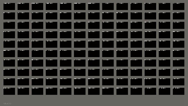 The installation creates between 200 to 300 new images every second. Thompson has chosen to use a relatively low-res display (15x10px) and is limiting the photos to black-and-white images.
